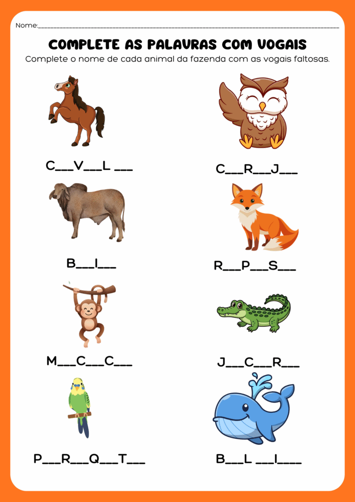 ✨ Eu tenho uma solução com essas atividades educativas ajudam os pequenos a memorizar as vogais, reconhecer palavras e associar com objetos do dia a dia, tornando o aprendizado leve, divertido e eficaz.